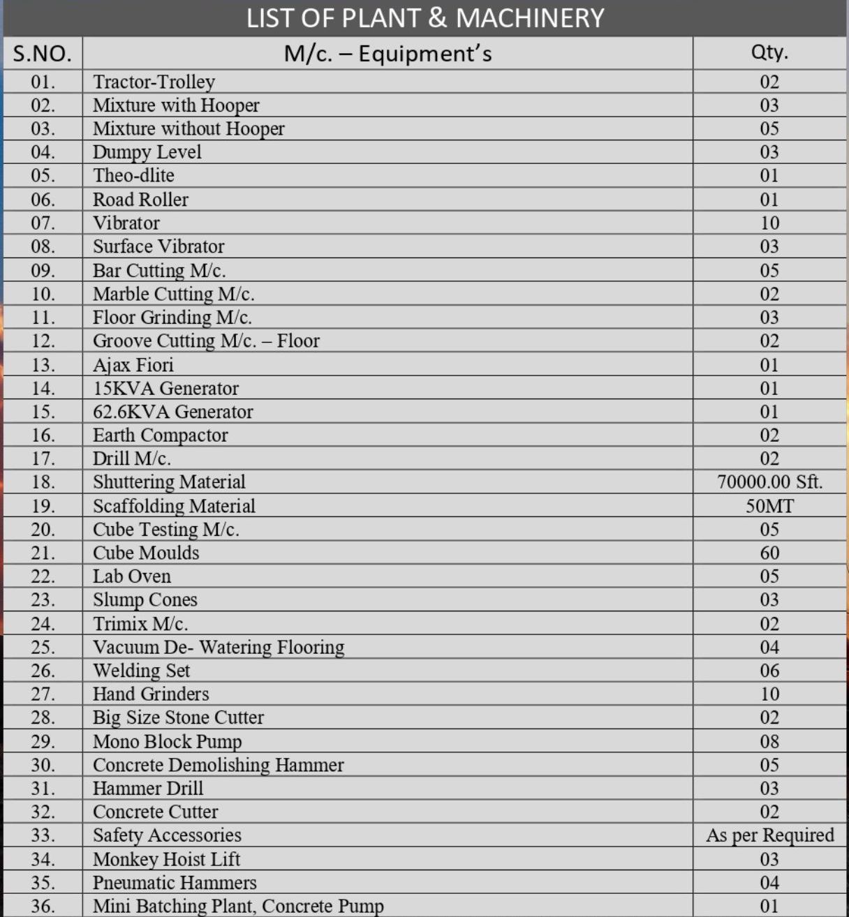 With our commitment of providing best service to the customers, we have been at the forefront of technologically innovations in construction industry with high quality tools and machinery employed for job completion. With over 7 years of experience in the industry, we have been building quality structures that can only be built by our high quality tools. We aim to provide quality service to our customer we have heavily invested in the latest technology, machinery and tools required for such construction. In all aspect of our business we try to offer reliable services to our customers. From construction and development to various add-on services & customer services we try to provide and use latest technological options available in field. How good is our services can be gauged from the fact that our customer tend to stick to us for their future products